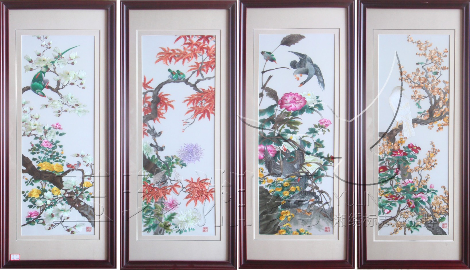 單面繡條屏 花鳥畫