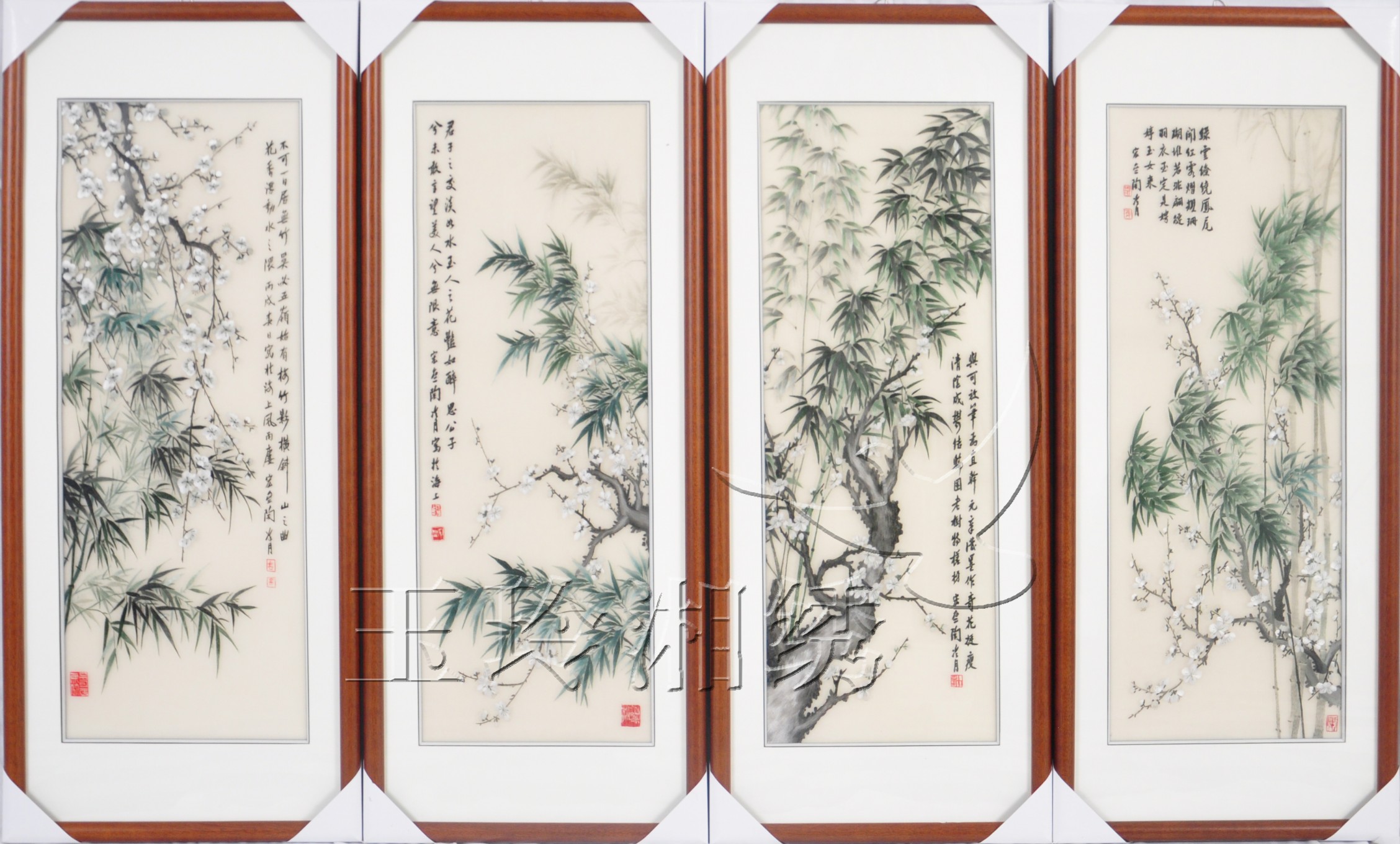 單面繡條屏 梅蘭竹菊