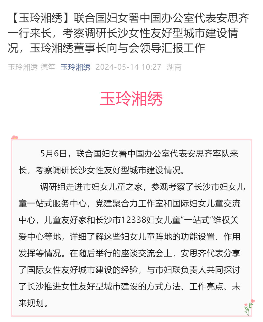 聯(lián)合國(guó)婦女署中國(guó)辦公室代表安思齊一行來(lái)長(zhǎng) 王玉玲董事長(zhǎng)與會(huì)
