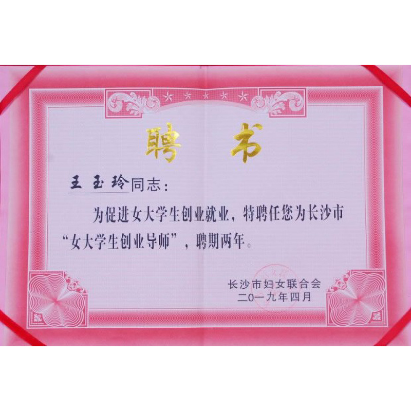 2011年 王玉玲大師被長沙市婦女聯(lián)合會聘為“女大學(xué)生創(chuàng)業(yè)導(dǎo)師”