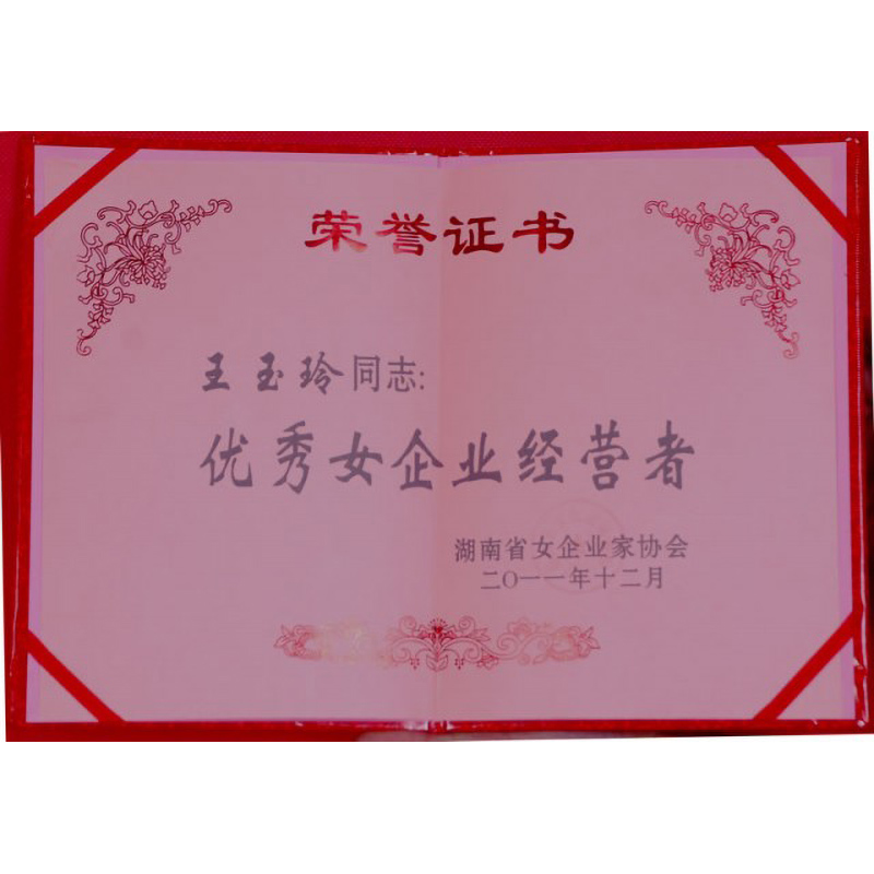 2011年 王玉玲大師榮獲“湖南省優(yōu)秀女企業(yè)經(jīng)營者”稱號