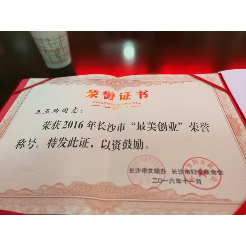 2016年 王玉玲大師榮獲長沙市“最美創(chuàng)業(yè)女性”稱號